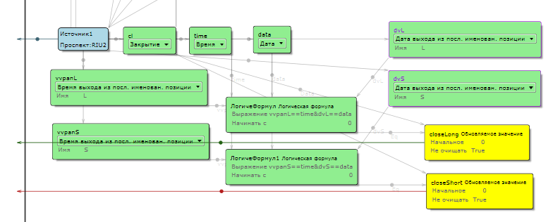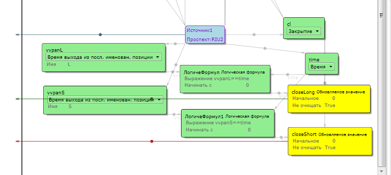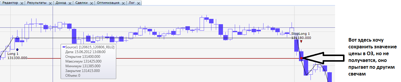 Никак не могу добиться, чтобы Обновляемое значение сохраняло именно цену выхода из позиции (вернее оно сохраняет, но при каждой новой свече обновляет, а мне этого не нужно), решил реализовать это через блоки ЗАКРЫТИЕ и PosActiveNameExit, но не вышло, постоянно обновляет данные.