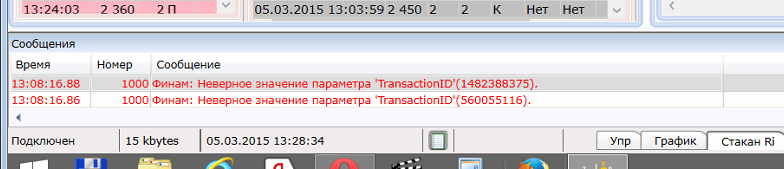 TSLab периодически выдает сообщение типа: 1000. Финам. Неверное значение параметра "TransactionID" (1482388375)