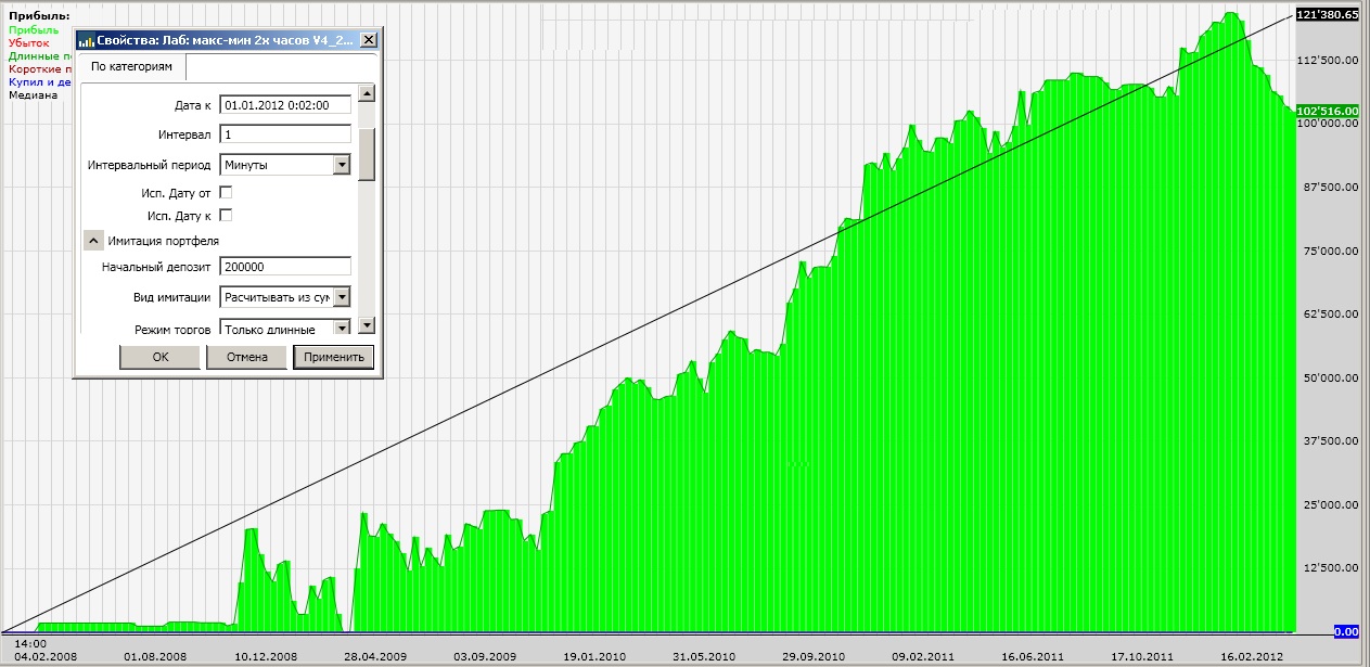 ... ... В ваших же интересах схему строения не публикую. ... просто угарно пошутил ! и ни кому не говори что образец есть в примерах. Построение канала по времени? в примерах? думаю путаешь. Там нужен пользовательский индюк, иначе не построишь. Но действительно ничего сложного, 3 кубика, балалайка и утюг. Опытным пользователям можно поразмяться и сделать картинку, как у меня)) Я возился минут 15, но без пользовательских индюков не сделать канал от часа Х и до часа Y. Картинка симпатишная, но на длинной истории ... оно самое Подсказка: индикаторы "максимум/минимум за" не крутите, они тут не подойдут.