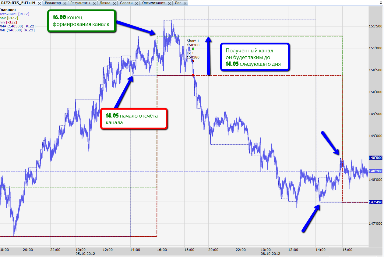 Важно!!! на время клиринга ставить отсчёт экстремумов нельзя. Т.е. 14.00 нельзя, а 14.04 можно