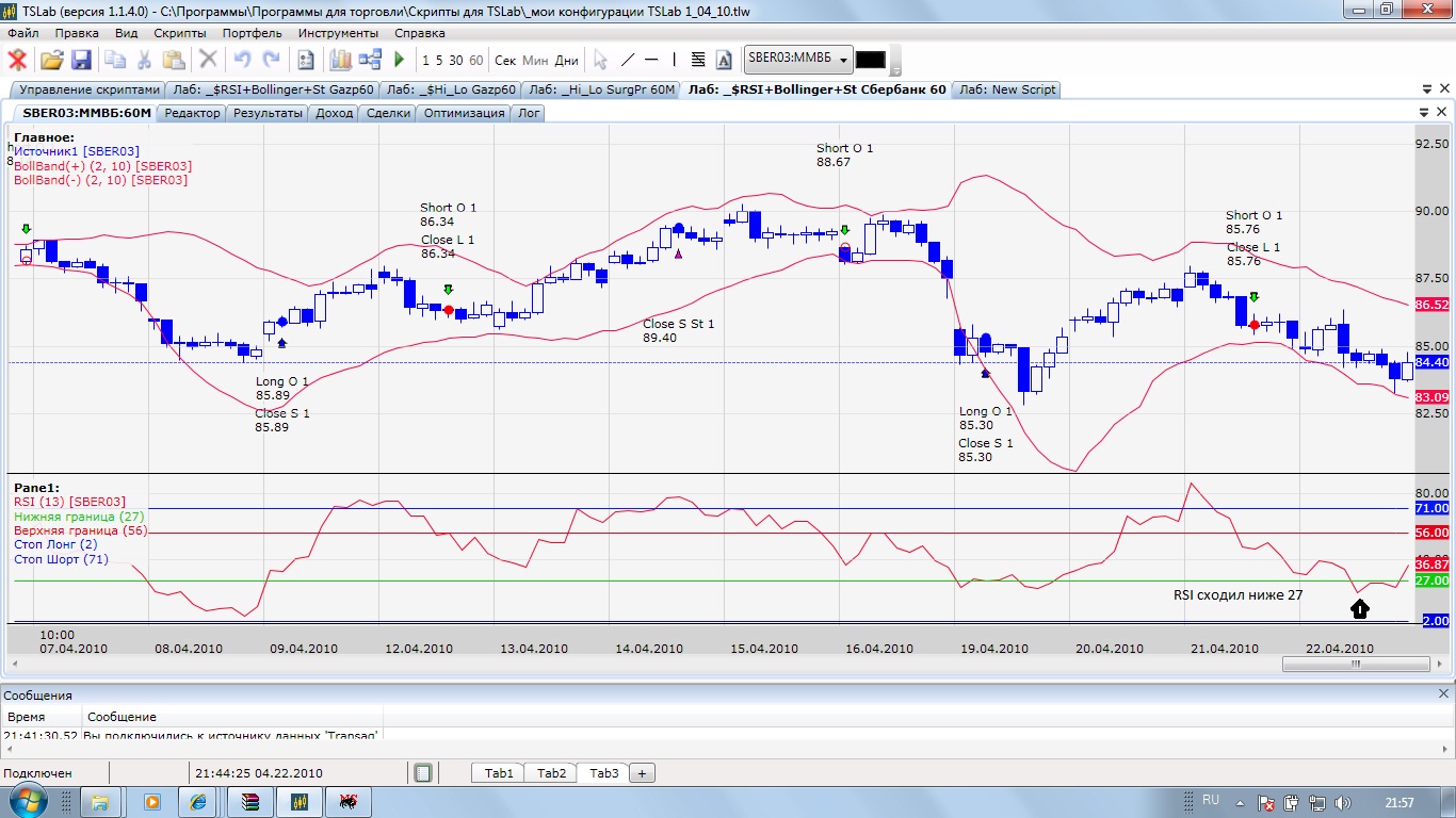 Добрый день! Скажи почему у меня график RSI с периодом 13 (по закрытию) в TSLab, отличен от графика RSI теми же параметрами в Metastok и Quik? Графики прилагаю. Спасибо.