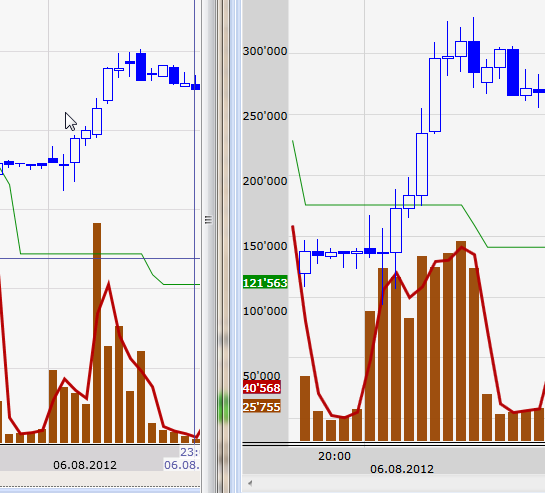 И вижу совсем другой график. И объемы другие, и даже бары цен. Скриншот прикладываю.