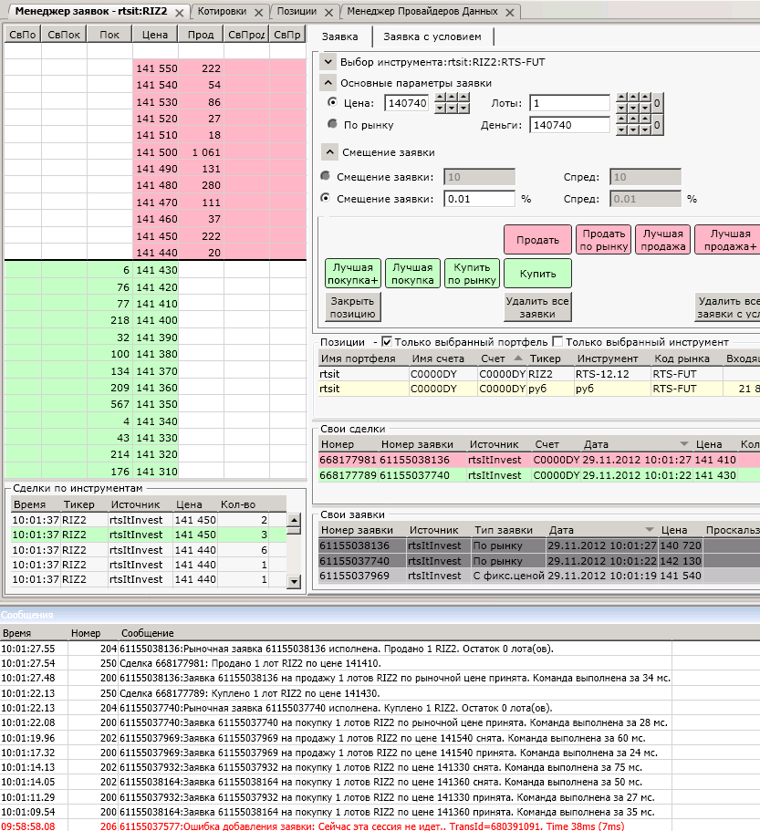 Подключение Промсервер РТС Плаза2 сделки за 28 нояб