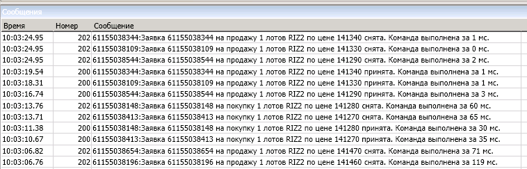 Действительно, специально с утра выставил несколько заявок и посмотрел цифры. Заявки в начале сессии: Последние три - условные заявки, они на биржу не идут: это плаза2?