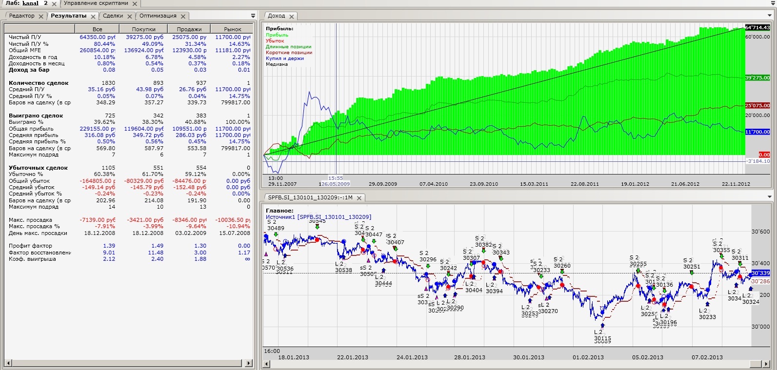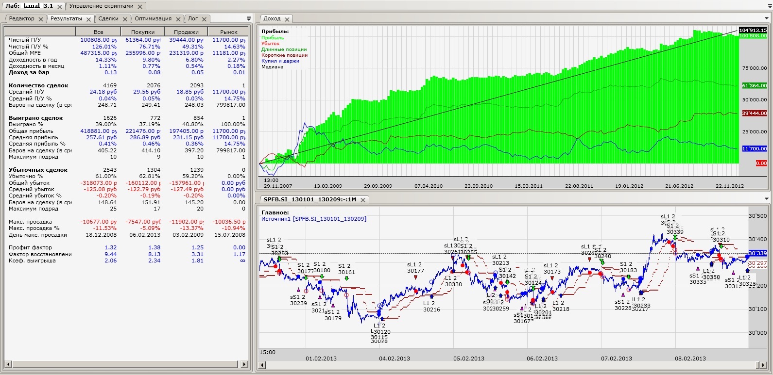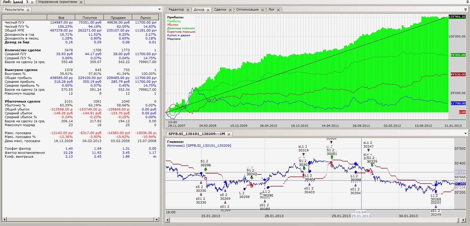 канал сделан из примера приведенного в том посте, но смысл в том что вами было указано что подобная система вами не может быть торгованна по причине больших просадок вот я и поупражнялся.
