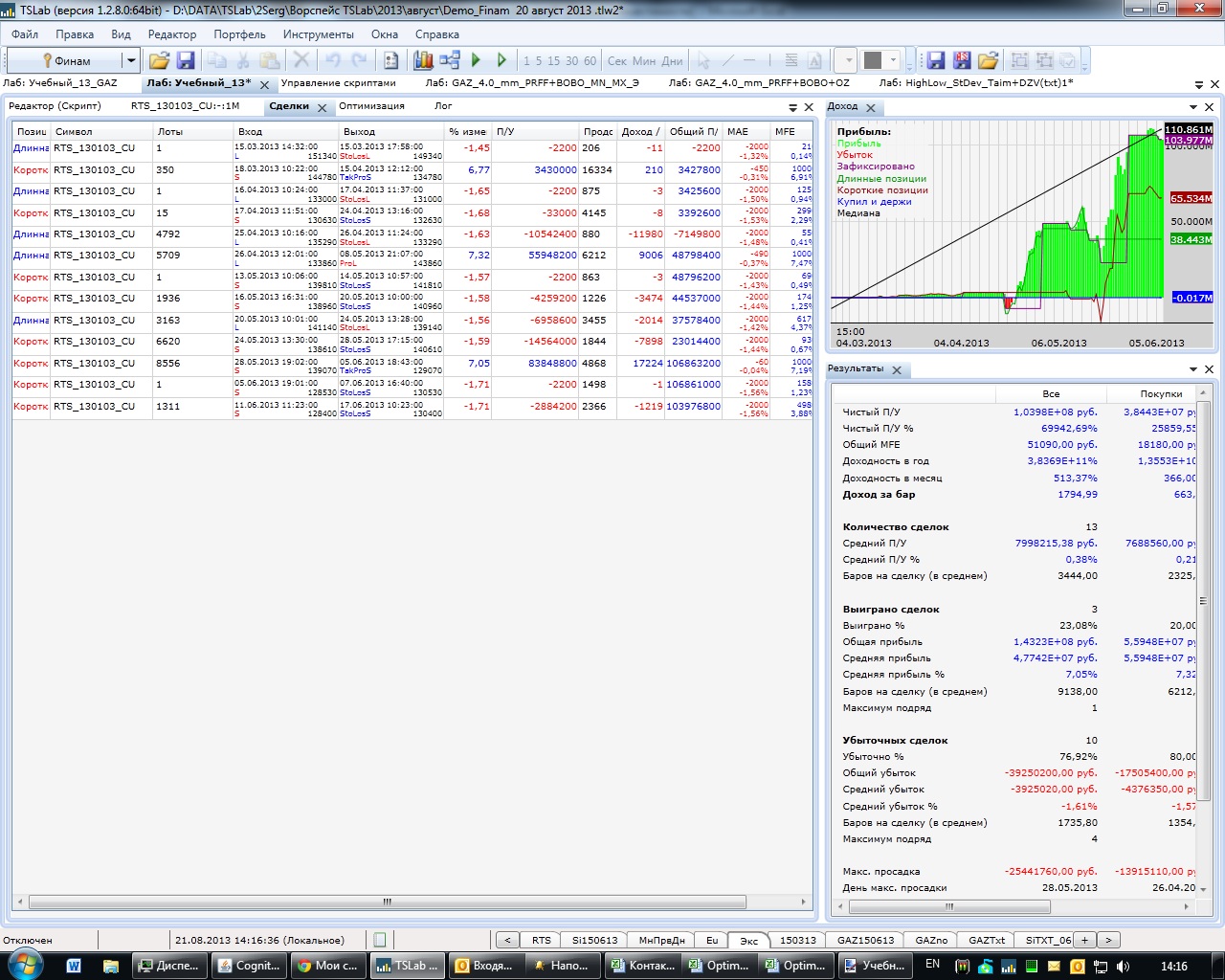 Или...... при убытке наращиваем лоты +1 (или N - которое можно оптимизировать), если прибыль - то следующее кол-во считаем : - предыдущее кол- лотов /2 или N ( где N - оптимизируем...)