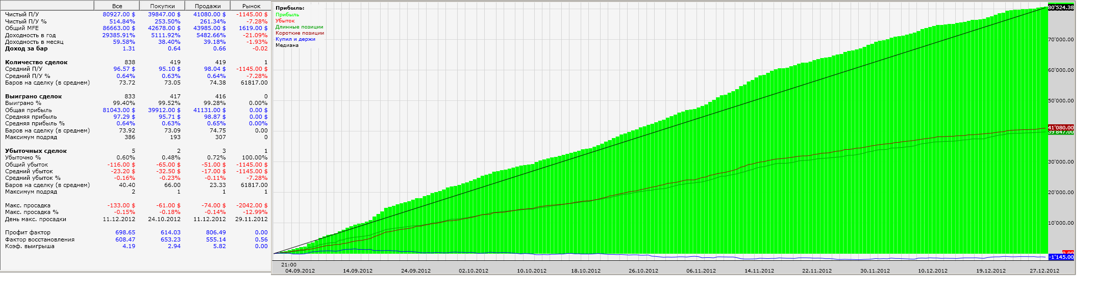 А еще есть возможность харлатанства)) поставить к примеру комиссию в -100р на сделку. ведь 4 убыточных из 800 сделок.. тут даже заглядывание в будущее не прокатит