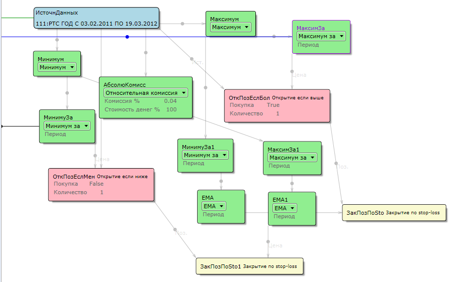 Товарищи, вечер добрый. Интересует такой вопрос, оптимизирую программу hi_low и вот возникла идея для улучшения работы вставить при закрытии функции такую логическую цепочку (на примере открытой лонговой позиции)- Источник - Минимум - МаксимЗа - EMA - закрытие (видно на прикрепленной картинке). А вот теперь главный вопрос: от чего считается ЕМА? Если я правильно понимаю есть набор минимумов, из них выбирается максимальный за период (пусть будет условно 50), т.е. это 1 значение и от него считается ЕМА? Но если бы от одного значения считалось, то значение ЕМА не важно бы было (можно любое поставить, сколько бы средних не считай от 1 в итоге 1 и получится). Но при изменении ЕМА происходят изменения полученных данных (доходность, просадки и т.д.). Коллеги объясните мне этот момент, а то я чего-то не догоняю.
