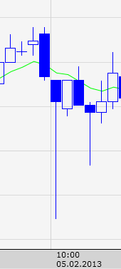 Сегодня в 10 ч., на открытии фьюча RTS-3.13 сравните первую свечу через Риком->TSLab (подключились до торгов) и другой терминал. Из-за этого стоп не был подтянут на 150 пунктов - мелочь, а неприятно.