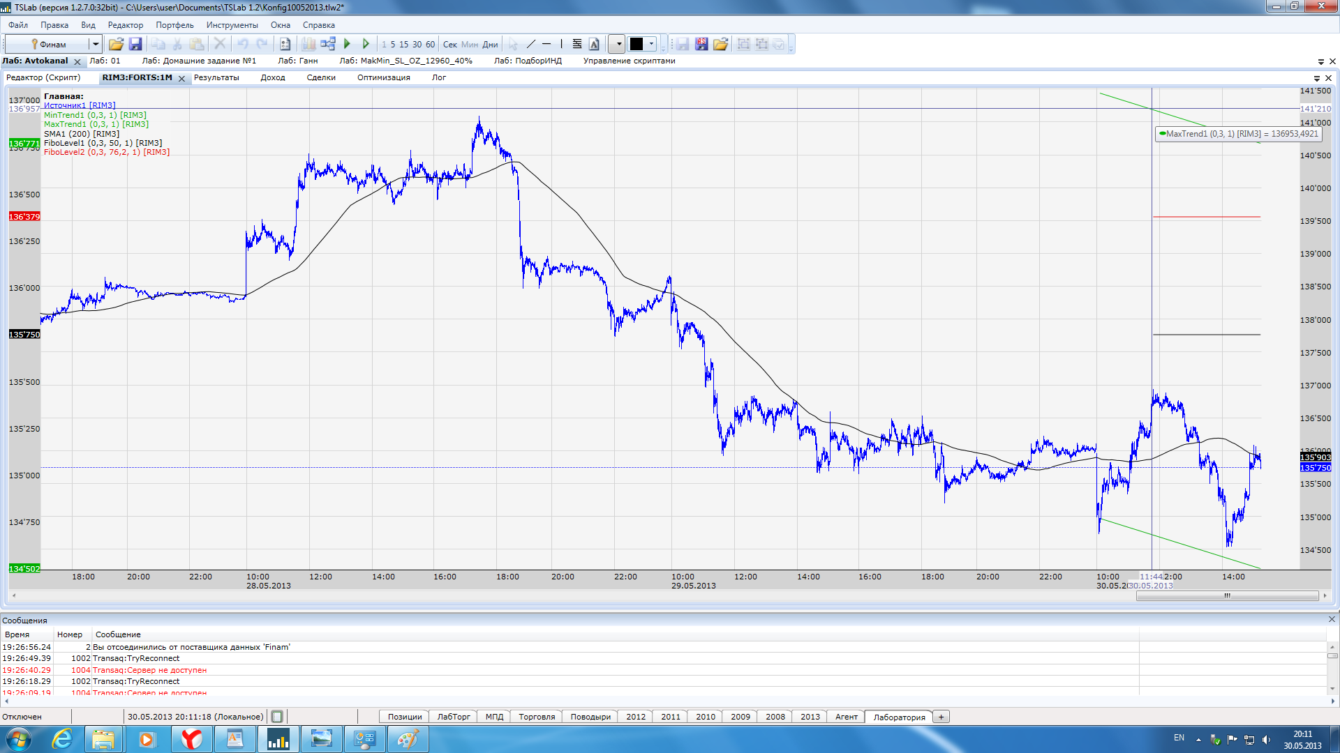 Обратите внимание что значение линии MaxTrend 136953, в то время как она отрисовывается на уровне 141210.