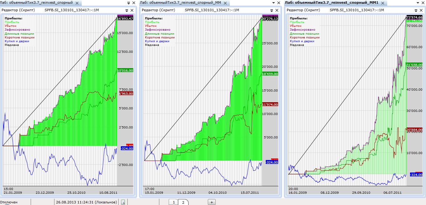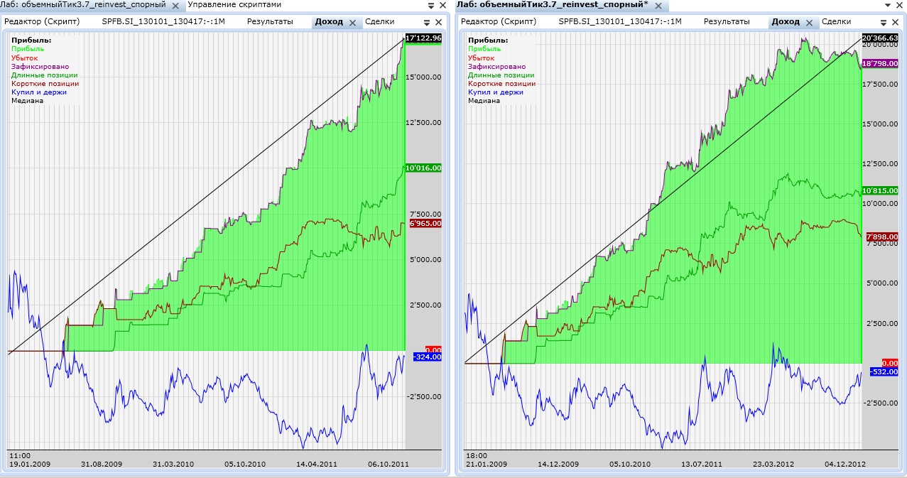 контейнер на Si, с реинвестированием . на картинках слева интервал оптимизации а справа фьючтест т.е. это 12-13йгод.