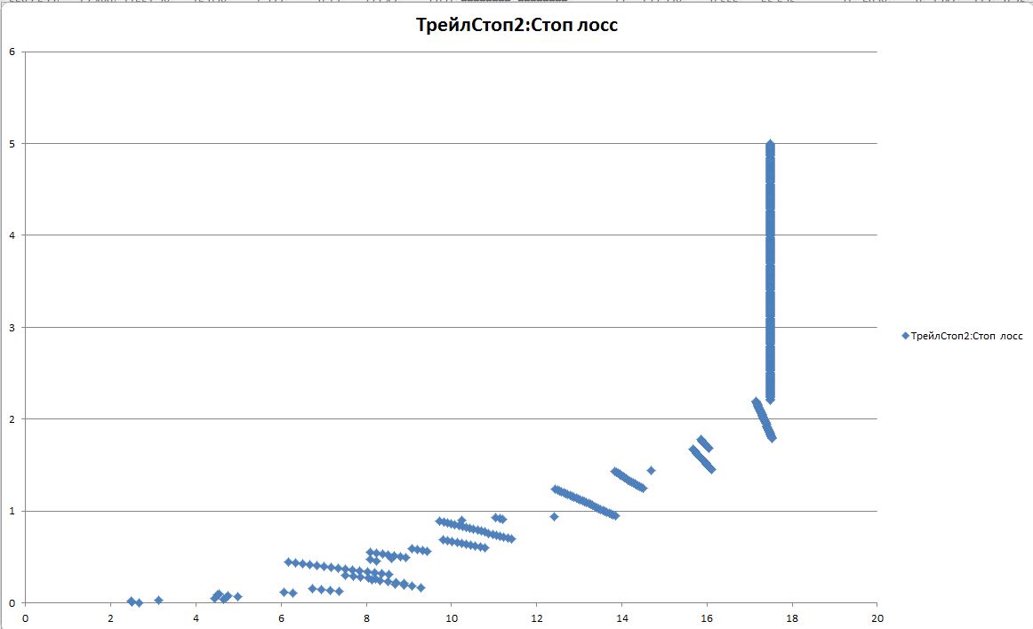 Разрабатывал стратегию по паре рубль/доллар и при подборе стоплосса получил такое интересное распределение. Точки сложились в интересные прямые.