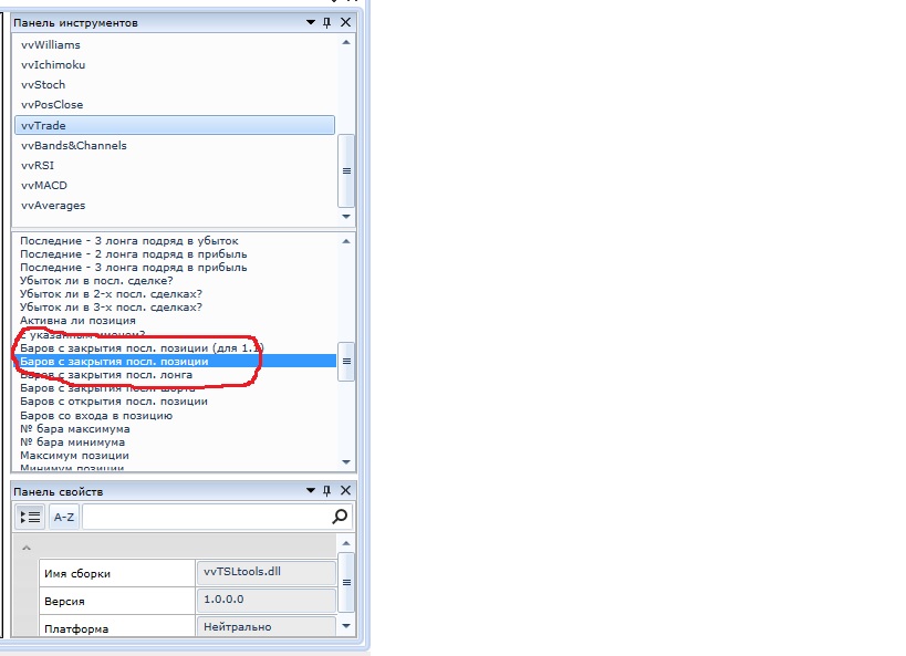 Это счётчик, на выходе которого номер (число) бара после бара, на котором закрыта позиция. Такой можно сделать и самостоятельно, используя стандартные блоки программы.