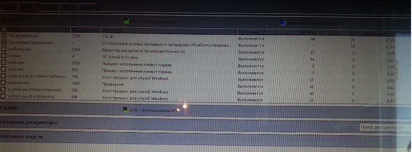 если тслаб съедает 30%, то и системные прерывания возрастают до 20%
