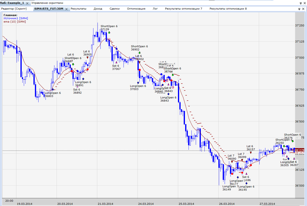 3. Что бы получить цену сигнала на сделку надо в обновляемом значении условие на обновление поставить то же, что и условие на сделку, а данные брать какие вам интересны. Если закрытие свечи, то цена будет выше/ниже сигнала. Можно использовать цену МА (для конкретного примера) или Typical Price, как среднюю цену тела свечи. Но в любом случае цену сигнала вы узнаете только после пересчёта скрипта, т.е. на следующей свече. Поэтому точнее будет, если вход для обновляемого значения вы поставите Typical_ Price[-1] или MA[-1]