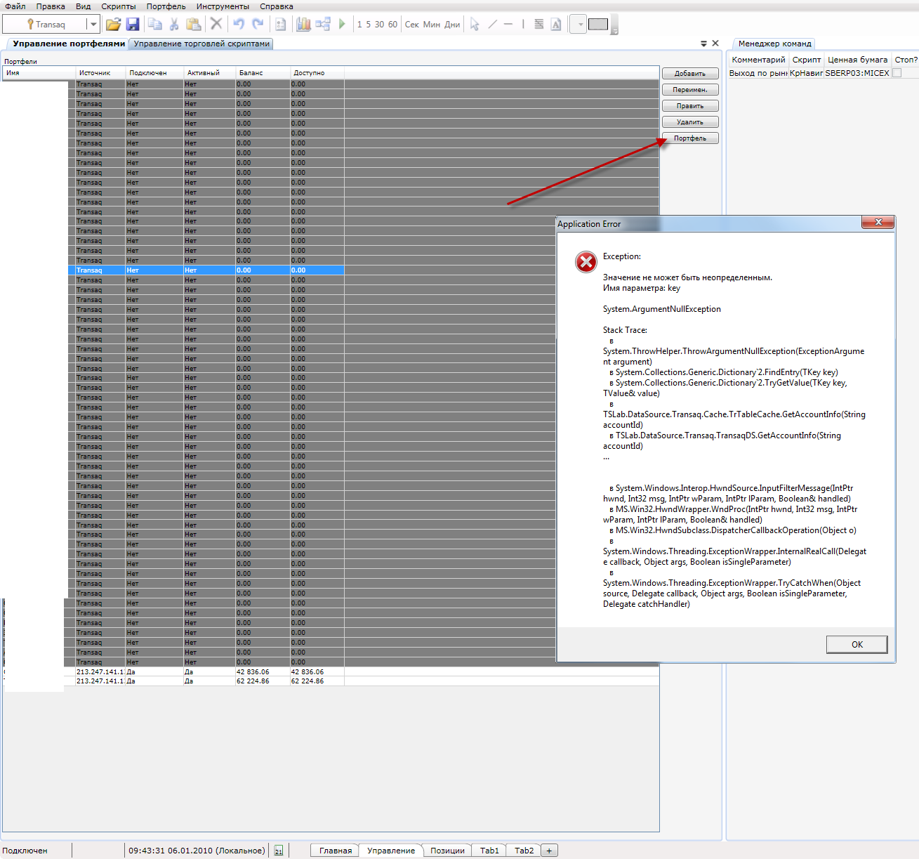 При нажатии на кнопку портфель выдает вот такую ошибку