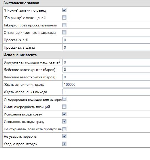 Тут на форуме много писали про "неверные лимитки" на самом деле такая заложена логика. Используйте что есть, в вашем случае как предложил ViL авто 0 и ждать исполнения 1. Или другое реальное кол-во баров через которое надо пере-выставить цену, а не абстрактную 1000 баров. я так понимаю, что дали костыль - "ждать исполнения" и все вроде наладилось, но проще тогда просто по рынку торговать чем 1 ставить - на малых тф с большой вероятностью заявка будет исполнена по рынку но дело даже не в этом, дело в том, что лимитный вход работает как надо мне, а выход работает не пойми как, поможет ли там установка 1 в "ждать исполнения" я не тестировал, так как логика стратегии другая, но есть подозрение, что в описанном здесь случае будет двойной вход - первый раз по рынку, а второй раз по установленной заявке (так как заявка перестает подчиняться агенту и не снимается до исполнения), я в самом начале этой темы писал что у меня был такой случай - открытие двойным объемом от запланированного, я там как раз крутил "ждать исполнение" - но точно в том случае так и не разобрался