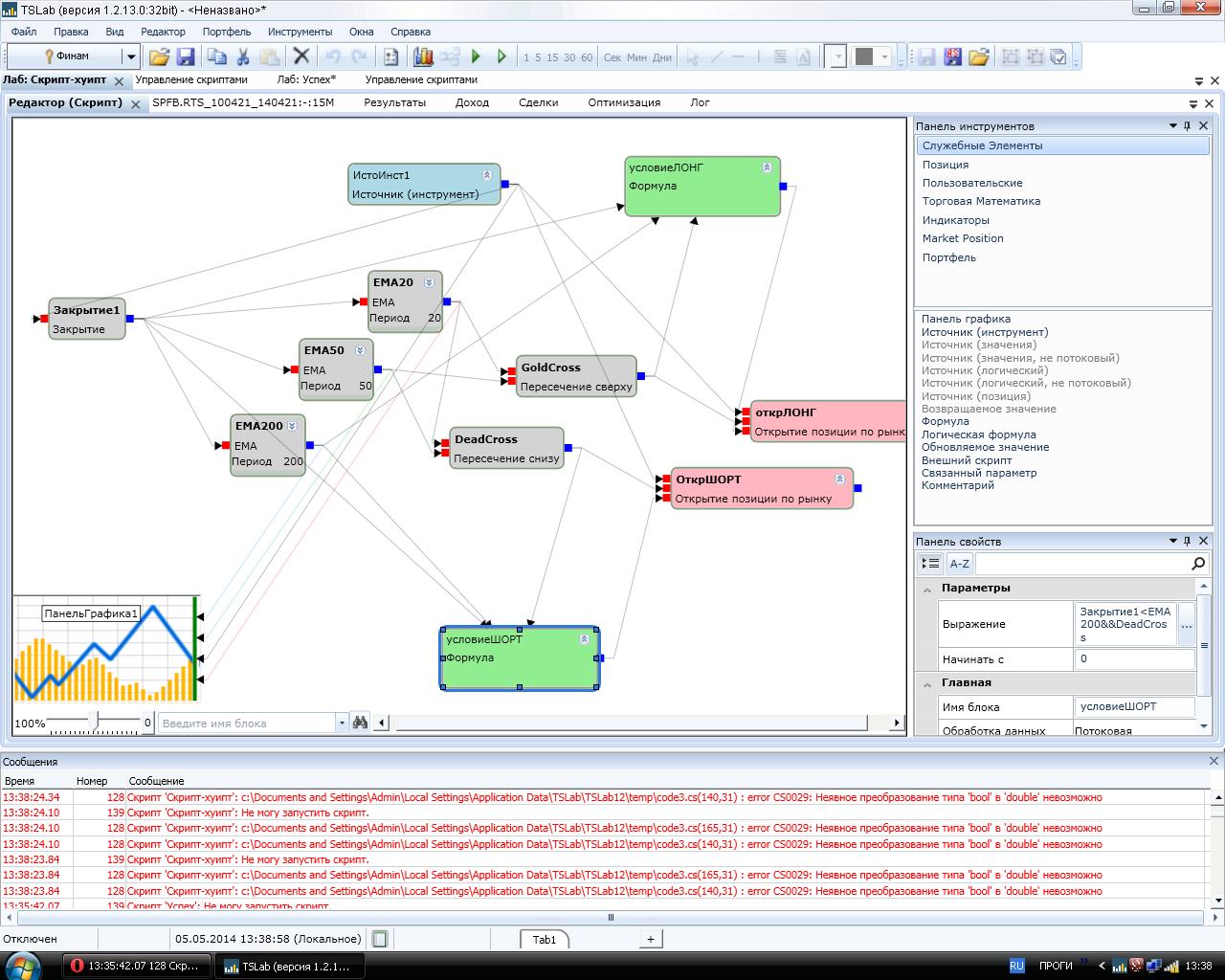 Здравствуйте. Сижу, пытаюсь сделать скрипт. Возникает такая ошибка, не могу понять почему. Говорю сразу, что недавно познакомился с ТСЛаб и мало что знаю еще)Спасибо.