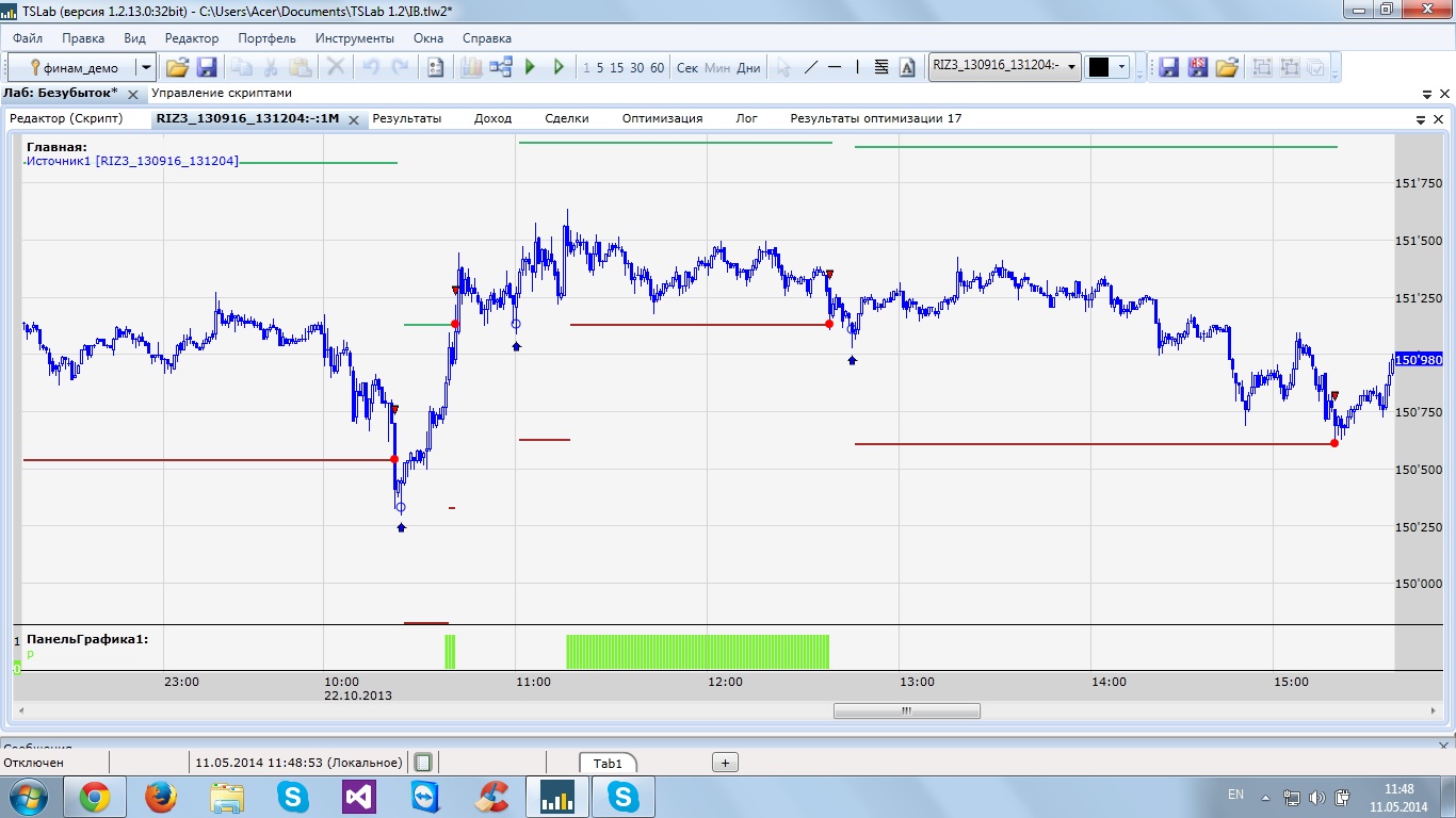 вот я кинул логику шортового стоп лося на график и он показывает, что, почему - то, при этих шортовых входах эта логика не работает. странно. даже если бы не работала, то, по идее, выход должен был быть по условию обычного стопа с уровнем -500