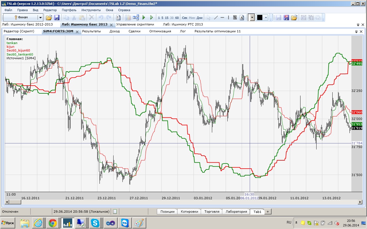 нене... цифра 2 это так на всякий случай, и это не меняет дела... дальше по 33000 и 6000 я не запомнил точные значения но это не главное я скрипт прикреплю что было понятно, это самый последний вариант dll здесь https://cloud.mail.ru/public/be8e62132dc9/TSLab.Community.Ichimoku.dllсуть в следующем хочу сжать 5, 10, 15 минутный тф в часовой и на двух тф получить ишимоку, но не получается.. да к стати если менять местами расчет индикаторов со сжатие м и без сжатия местами происходит как на рисунке