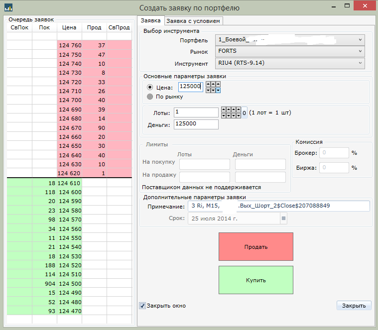 Пример я делаю заявку по цене 125000 текущая цена 124 600 т.е. сразу же заявка не выполниться, а будет висеть какое-то время. см приложение. И при следующем пересчете скрипта по интервалу (в моем случае это раз в 15 мин.) заявка снимется.