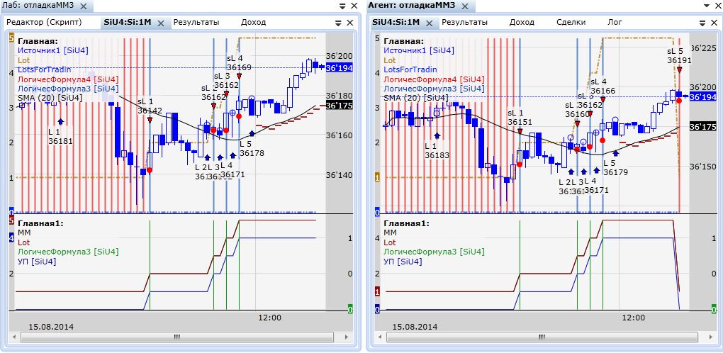 надо сказать что "профит последней закрытой позиции" не имеет истории и на реале сработки блока ЛогичесФормула3 нет. и разница между лабораторией и реалам большая, долно быть набранно 8 лотов а набора нет.