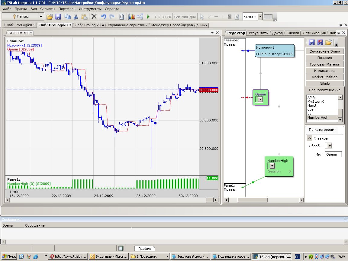 1. Странно...У меня показывает как надо, я и SharpDevelop закрыл, но в папке ТСЛаба .dll оригинал не убирал. Nektodron подскажите , почему может возникать такая разница? 2. 777, выложи пож формулу, куда этот номер бара надо ставить, я понять не могу как при рассчёте средневзвешенного не нужно итоговое кол-во баров за прошлую сессию?