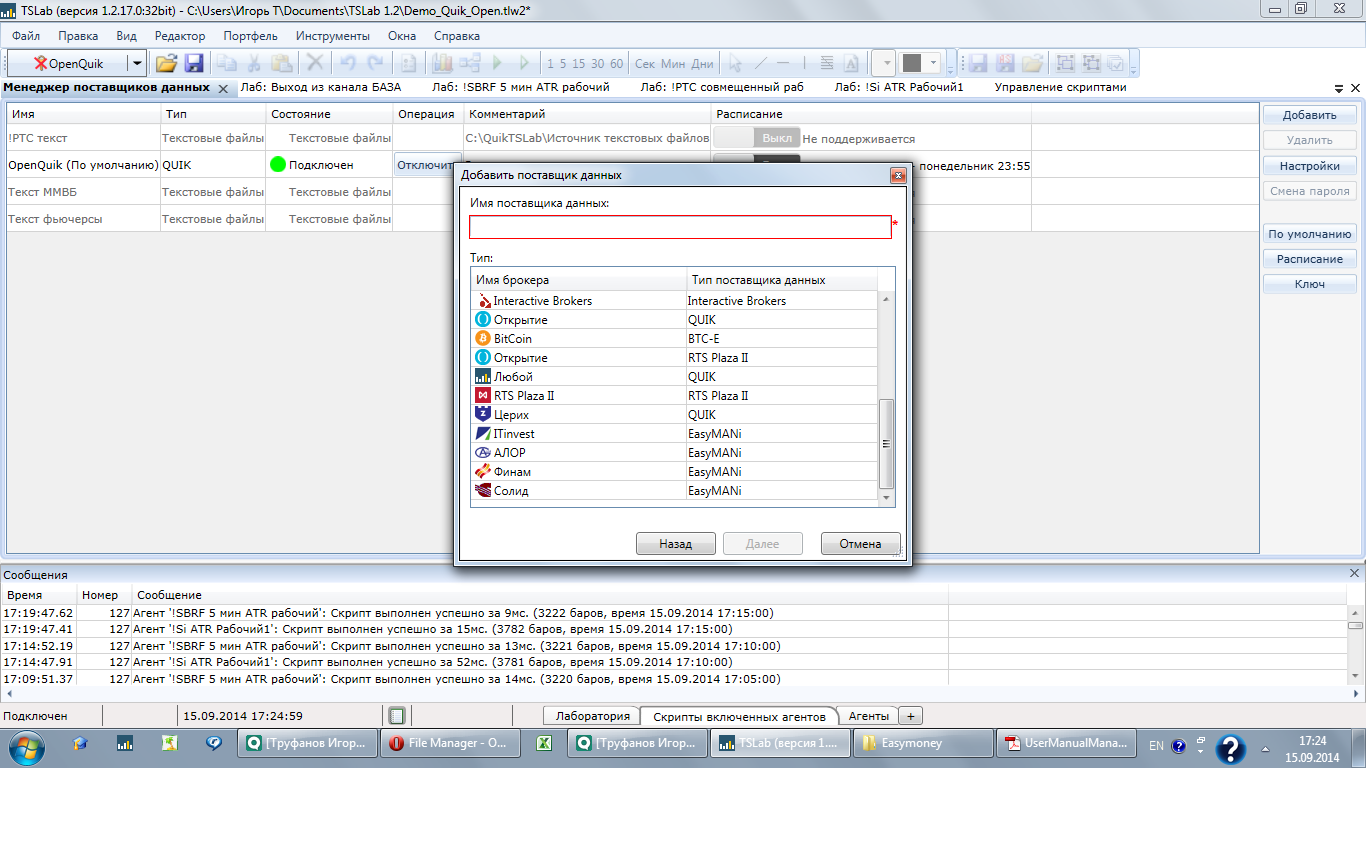 Разработка МТС и торговля с ее помощью в системе TSLab ------