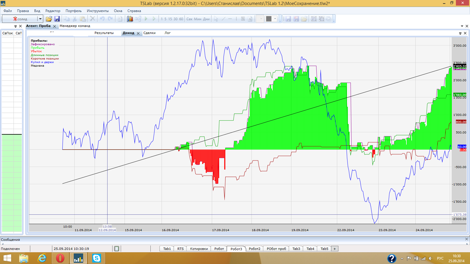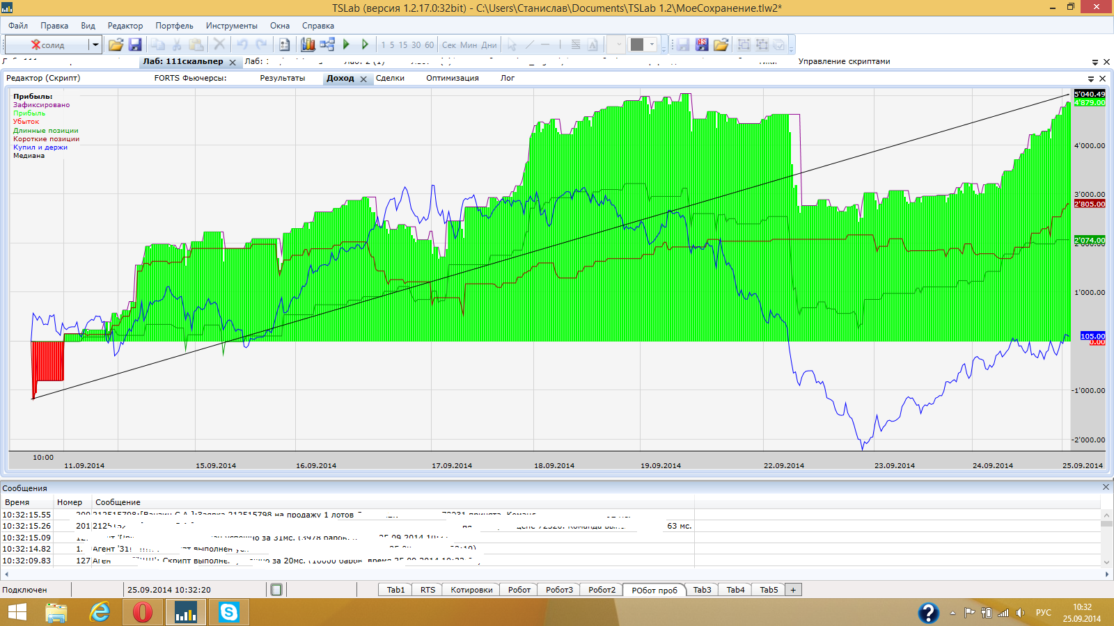 для увеличения "мяска" на рынке соглашусь что стратежка не важна. но на самом деле все совсем не так. в реале с психологическим трудом переносятся просадки с набором даже до 11 лотов, а вот если хорошую стратежку этим улучшать тогда результ очень гуд. отдельный интерес предстваляют стратегии с множественными входами. там есть ньюанс - после какого выхода позу наращивать и это существенно влияет на эквити. Да множественные входы это класс, это как раз усреднение позиции, кстати скрипт запустил с этого контракта, ниже скрины, дайте оценку плиз. Единственное скажу почему такое расхождение между лабой и агентом потому что агент был запущен позже чем лаба!!!!!!
