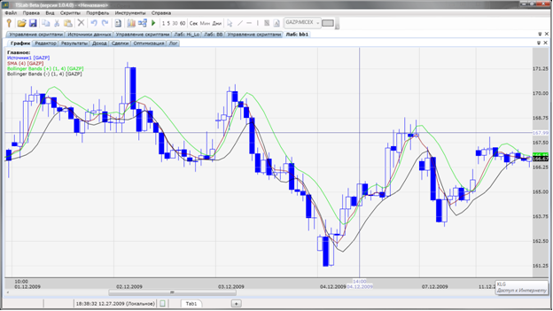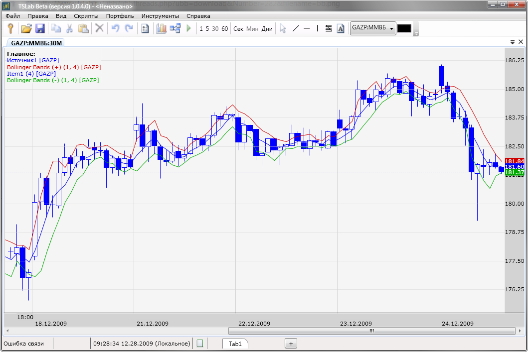 BBLower = MA(P,N) – k * StDev(P,N) - нижняя ограничительная линия,