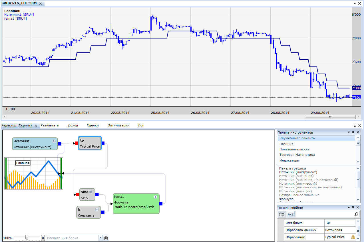 Пытаюсь сделать алгоритм, который будет ориентироваться на сигналы от индикатора Renko. На форуме есть индикатор Renko, но проблема в том, что мне необходимо, чтобы источником к индикатору выступала формула.