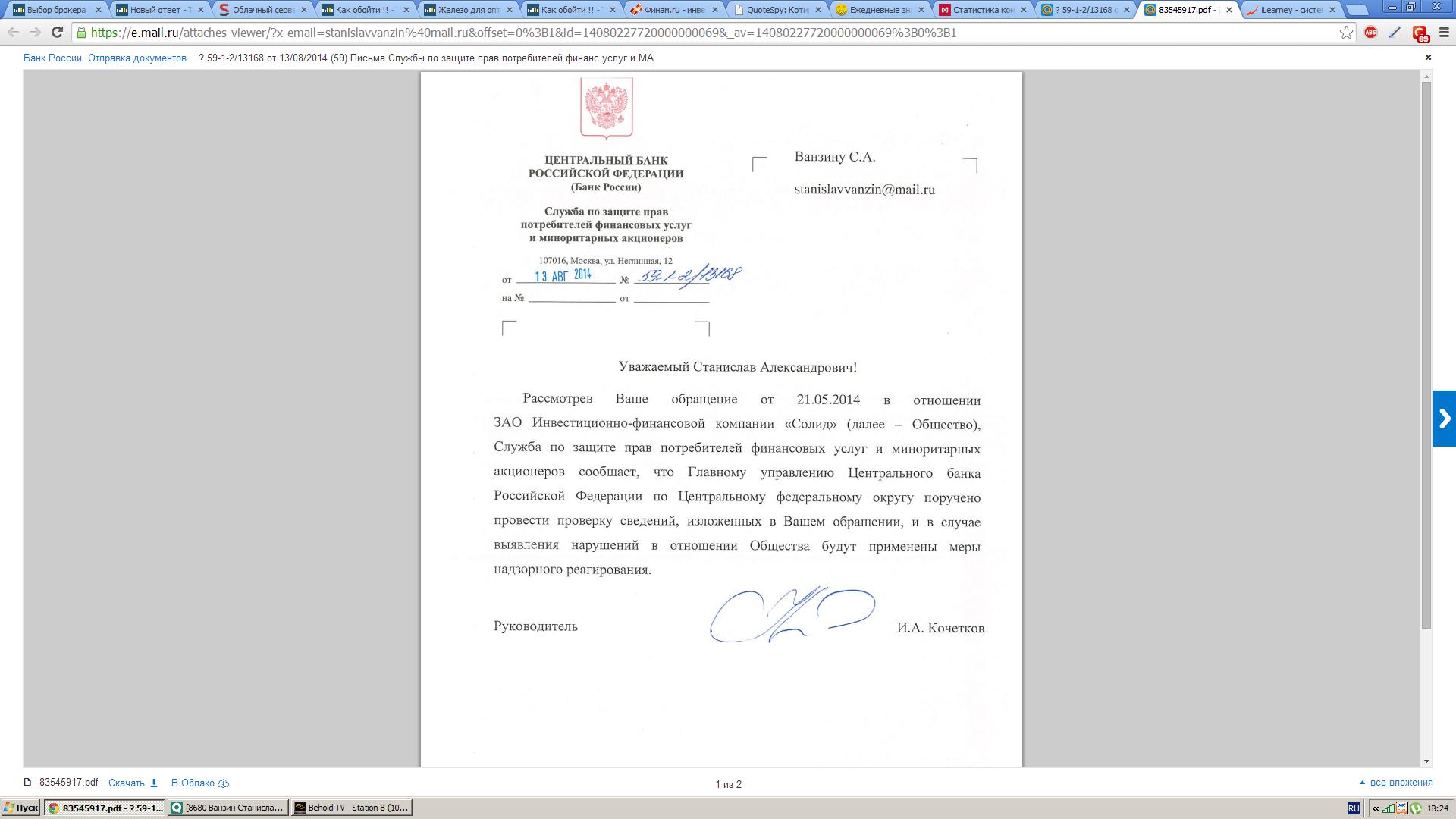 ir@moex.com Я писал сюда уважаемый Резидент, но отечают долго, и возможно я ошибаюсь,хотя в отправленных этот майл последний, потому что было такое что я написал много куда они сказали что этим не занимаются и занимается сейчас этим ЦБ , так как ФСФР сейчас нет!! Ниже что ответили!! Спасибо Станислав! Я уже отыскал этот адрес, у них есть электронная приёмная. Туда всё отправил, заявление приняли. Буду ждать действий от ЦБ РФ.