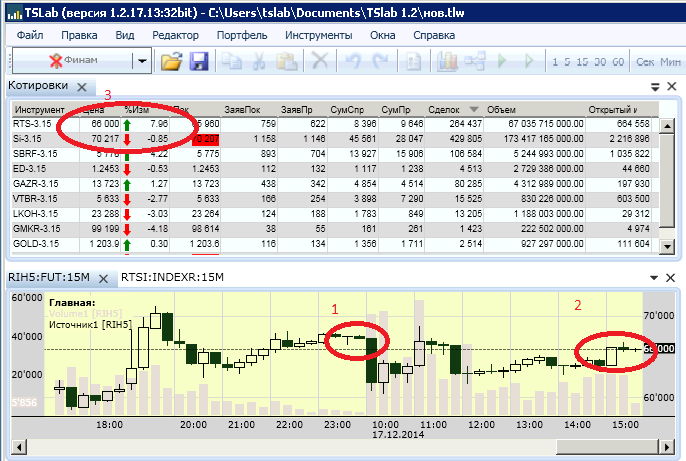 2.Значение фьюча РТС на 15-45 17 декабря (уровень ниже)