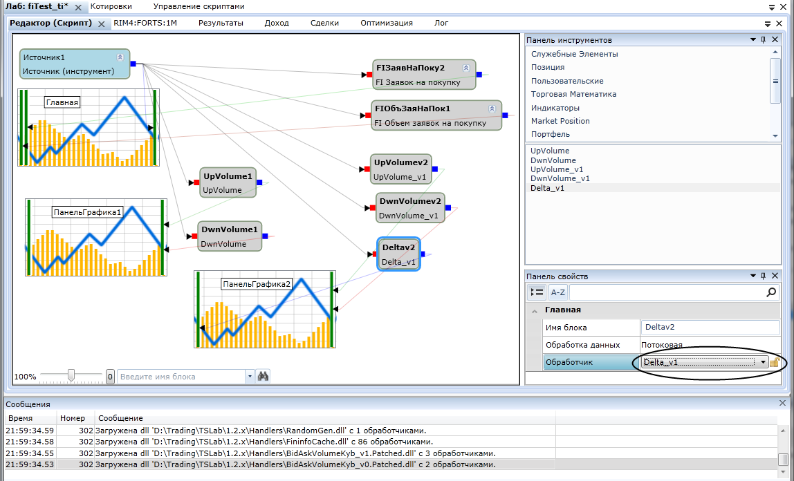 Приветствую Ti_ru!Хорошая работа, информативная. Но есть одна не понятная штучка. На работающий скрипт решил добавить дополнительное логическое условие с Блока Дельта. И произошло странное: скрипт напрочь перестал генерировать сигналы на вход-выход. Думал с условием что-то намудрил. Проверил на чистом ( с нуля созданном скрипте) на одном лишь блоке Дельта. Та же история. На графике всё прекрасно рисует и в сек, и в минутах. Что может быть??? Какой тип данных идет с блоков Дельта, UP, Down???