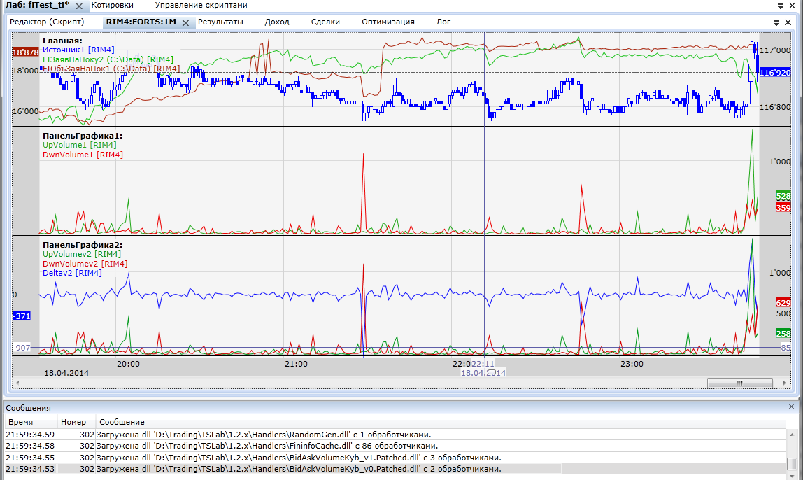 Для информации: в версии ТСЛаб 1.1.23.0 исправлена проблема с тиками. Да, всё здоровско работает. При использовании в скрипте одновременно Delta_v1(от Ti_ru) и ИстСумДельт(от jhgjrht) вылелает вот это: 14:46:29.03 c:\Users\AppData\Local\TSLab\TSLab\temp\code11.cs(26,28) : error CS0234: Имя типа или пространства имен 'TSLab' отсутствует в пространстве имен 'TSLab.Indicators' (пропущена ссылка на сборку?) такое возможно или опять только у меня?