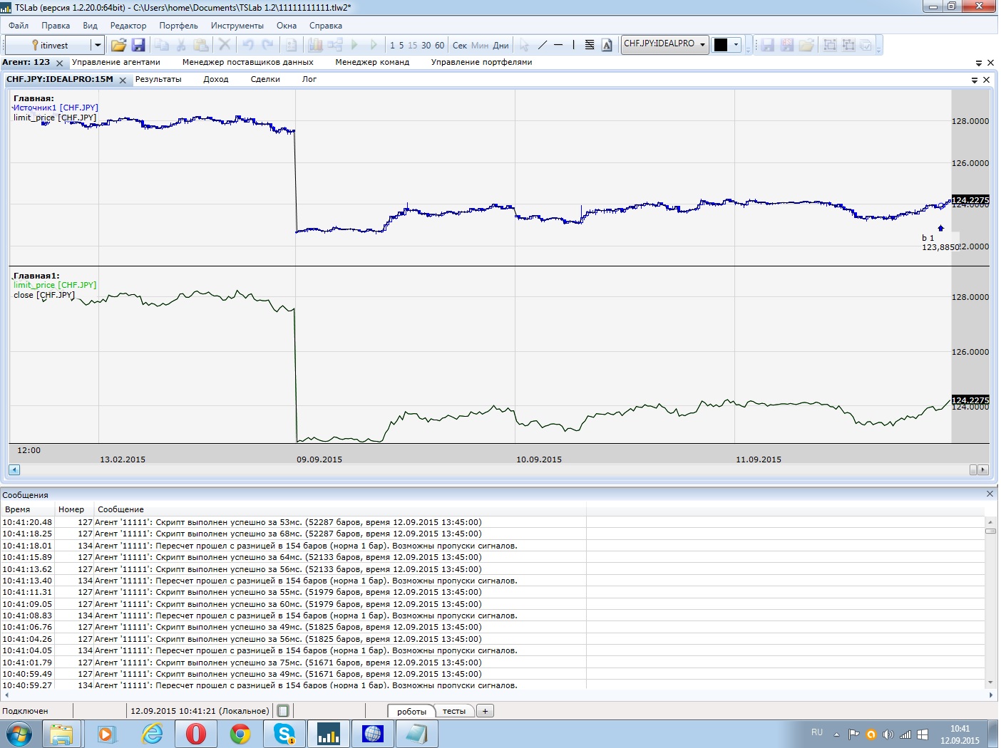 Подключение ТСлаба. На удивление, все прошло согласно руководству пользователя легко и непринужденно. Протестил одновременно 8 бумаг с разных бирж в одном боте число бар на каждую бумагу 1111. Нормально загружает данные. Несколько задучмчиво, но минут за 5-7 запускает бота. Заявки лимитные ставит, по маркету тож ставит. Но недостаточно тестил т.к. 6 сделок унесло -5000руб ибо плечи и комиссы нехилые. Если бот смотрит 1-3 бумаги и ему достаточно исторических данных за недели 2-месяц, то все ок работает. Скорость выставления-снятия заяв пишет 200-400мсек. Впринципе годно для роботорговли еслиб не нижеследующее...