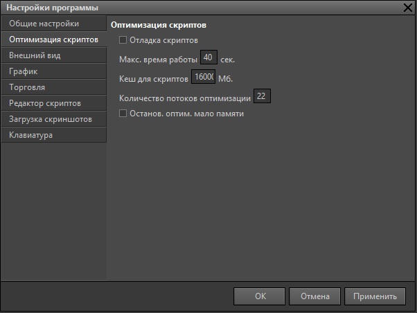 Добрый день! Собираюсь приобрести ноут специально для торговли и для оптимизаций в свободное от торговли время. Посоветуйте, пж, оптимальные требования последней версии ТСЛаб к железу. Так как быстродействие компьютера/программы сильно зависит от количества торгующих скриптов и таймфрейма, а одновременно у меня будет торговать около 16-20 скриптов, то хотелось бы понять с каким железом лучше брать комп, если 4-5 скриптов будут торговать на 3-х минутном фрейме, 6-8 скриптов на 4-х и 5-ти минутных фреймах, остальные на более старших фреймах? Прошу подсказать. Спасибо.