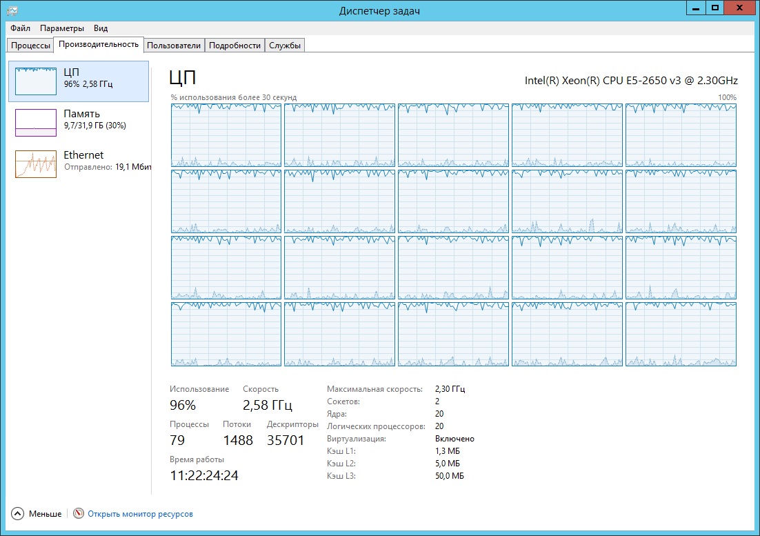 по опыту использования приложения на серверах скажу как есть - многопроцессорные системы о не умеет нормально нагружать, у него проблемы с передачей информации между подсистемами памяти.