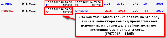 Как бы появилась короткая позиция от 16 числа, при только что (17 числа) закрытой длинной, т.е.позиция задним числом, заявка на её открытие висит в менеджере команд и создана была менее часа назад, а TSLab видать считает что есть позиция, так как пишет "Открыта" и стоп рассчитывает для неё.