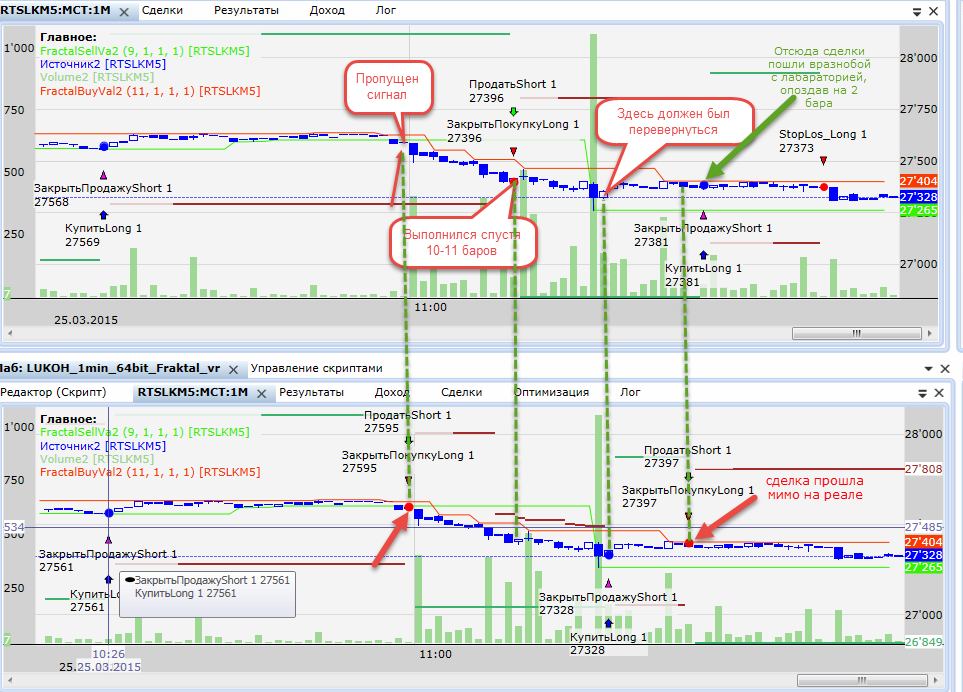 Одновременно с ним выполняется работает лабараторный вариант стратегии. Однико частенько в сравнении с лабараторией, сигнал в реале запаздывает, и весьма существенно.