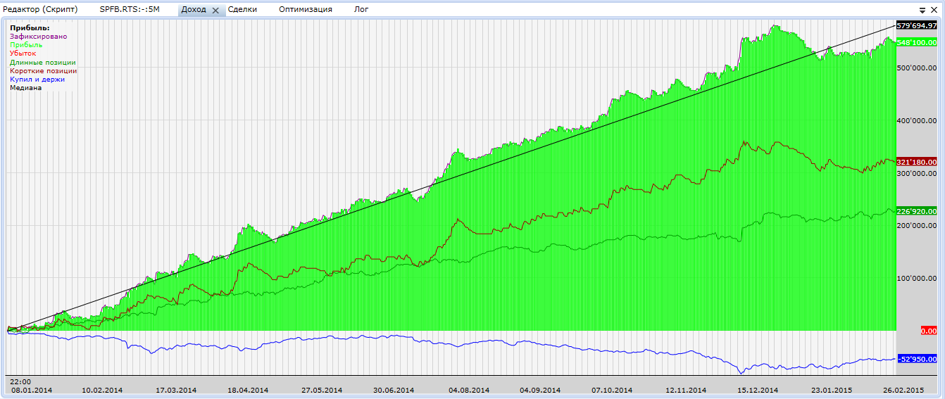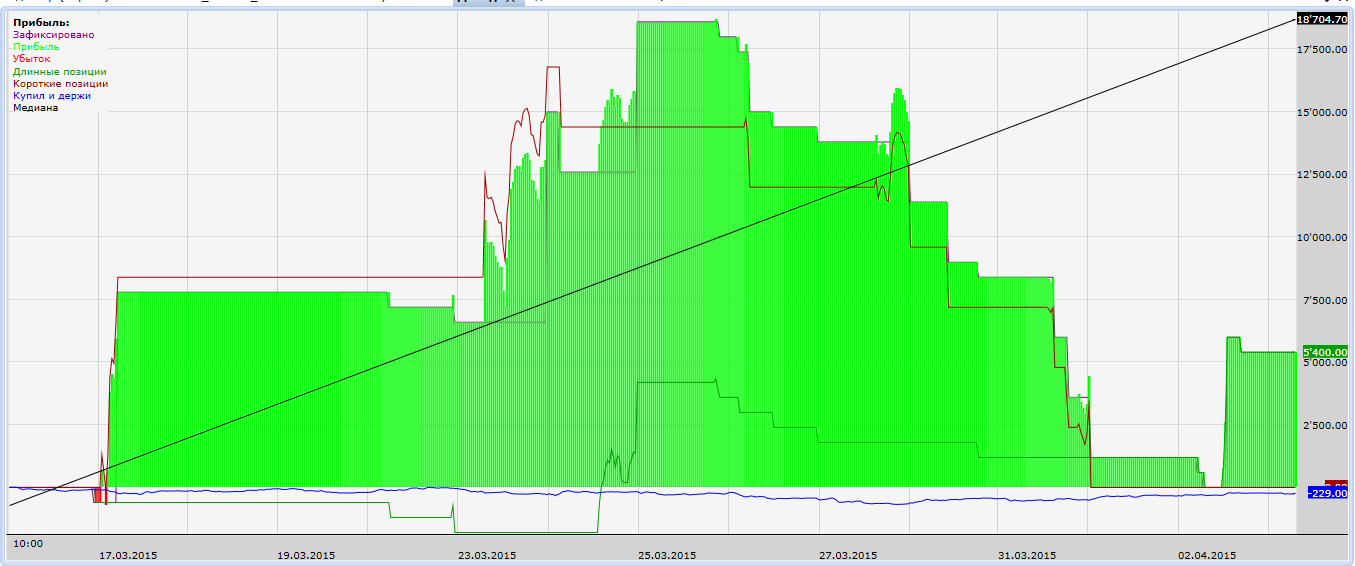 Не буду спорить, если он вам дает положительный результат, значит в этом есть логика. Я смотрю немного на другие показатели. Но спасибо за критику. Я учту Не в положительном результате дело. а это показатель прочности системы, считайте что пойдет проскальзывание выше тестового на 0,09% и все, профит умер в 0, для примера поставьте проскальзывание 30 пунктов для ртс. К чему такое проскальзование. 30 шагов по ртс. Вы торгуете какой суммой!?если вы торгуете 10 млн то конечно такое проскальзование может быть в каждой сделке. а если у вас на балансе 100 000 рублей то не понимаю к чему это все и такие усложнения.Вообщем ладно. тут мы немного не солидарны с вами.