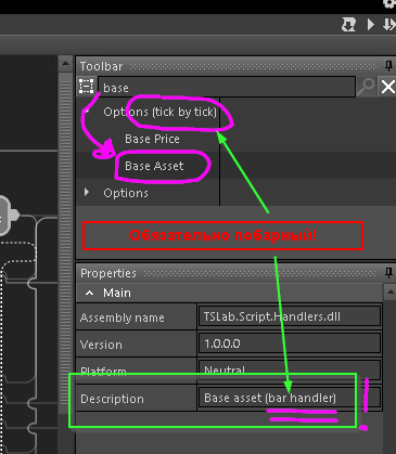 Для меня, например, наиболее важным является п.2, затем 3 или 1. А для его работы не хватает чуть-чуть - получать достоверные результаты при тестировании (остальные 99% функционального набора блоков уже есть) Это "чуть-чуть" вполне может быть по объёму работы равно всему, что уже сделано для опционов. Там ещё с философией проблемы... Короче -- будет. Но пока что надо постараться обойтись без этого. Режим виртуальных сделок по задумке позволяет сравнить на реальном рынке сделанное в алгоритме изменение не затратив на это реальные деньги. Что касается приоритетов, я бы сказал что мы хотели пойти по пути 3-1-2. Собственно, основной функционал по п3 на мой взгляд реализован. Теперь пошел терминал для ручной торговли (АРМ трейдера). На мой взгляд, его можно сделать мега-удобным. В идеале, чтобы даже роботов потом писать не нужно было.  Блок "Profit ATM (IntSer)" = "Профит на деньгах (IntSer)" - работает, НО не учитывается прибыль/убыток от работы хеджера в базовом активе.[/b]. Очевидно, блок учитывает профит по фьючерсам. Потому что опционная позиция -- это единый объект. Проверить это элментарно в агенте " Simm trading". Кликаете в зеленую стрелочку на вертикальном маркере текущей цены -- он покупает виртуальный фьючерс. (Понятно, БЕЗ дельта-хеджа нужно проверять.) Потом кликаете в сиреневый круг снизу этого же маркера -- он продаёт фьючерс. В итоге должен получиться ненулевой профит позиции. Цены сделок будут написаны в логе агента. Если не работает -- значит бага-бага и буду исправлять. Но вообще это будет более чем странно. Чего хочется. Иметь профит не по всей позиции, а для опционов - отдельно (и лучше раздельно по каждому типу), для сделок в БА - отдельно. Это был бы самый простой вариант - видно какая компонента чего привносит в конкретной торговле агента. Какие инструменты набрал в позицию - сложил и получил суммарный профит. На мой взгляд такое "разделение на компоненты" -- откровенно вредное. Это как если Вы в диверсифицированном портфеле начнете смотреть какая стратегия у Вас сейчас льёт, а какая зарабатывает. И потом "сливающую" выключите. Что касается "выделить профит по фьючерсу". Попробуйте взять обработчик " Base Asset" == " Базовый актив". У него на выходе будет обычный линейный инструмент -- почти такой же как у обычного линейного источника " Instrument". Теперь этот же самый инструмент из этого блока подайте на вход такого же блока " Profit ATM (IntSer)", какой мы использовали раньше. Назовем его " FutPnl". Это и будет профит только по фьючерсу. Если его вычесть из общего профита всей позиции -- получится профит чисто по опционам. Напишите свои впечатления, что у Вас получилось? То ли это, что Вы хотели?  Успеха!
