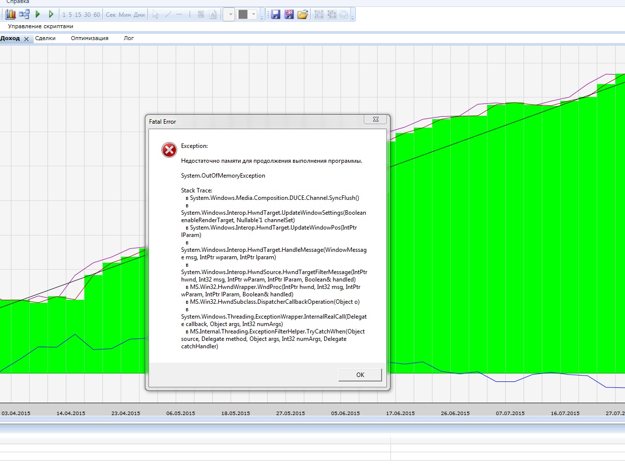 когда захожу на вкладку "Доход" выдает сообщение (см файл вложения) и вылетает. Вылетает не каждый раз, а только если период больше чем 6 месяцев (примерно) на минутках