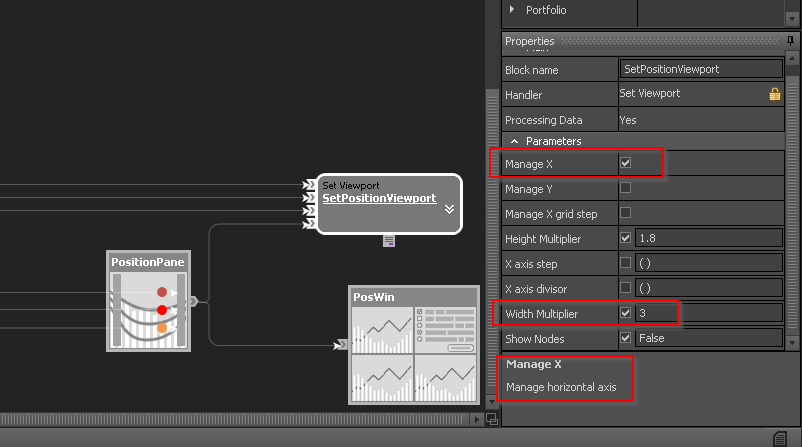 Есть вкладка Position и, соответственно, блок (или панель) с именем "PositionPane", в котором в редакторе задаются координаты отображаемого графика: X1, X2, Y1, Y2 текущей позиции.
