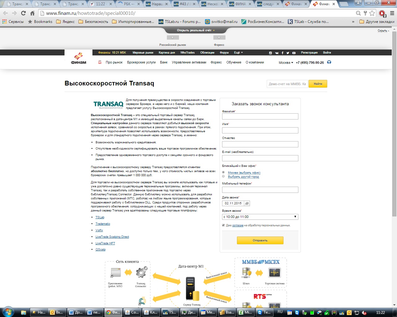 Но насколько нам известно, Финам снова стал давать подключение к шлюзу. http://moex.com/s444 он еще быстрее транзакшфт.