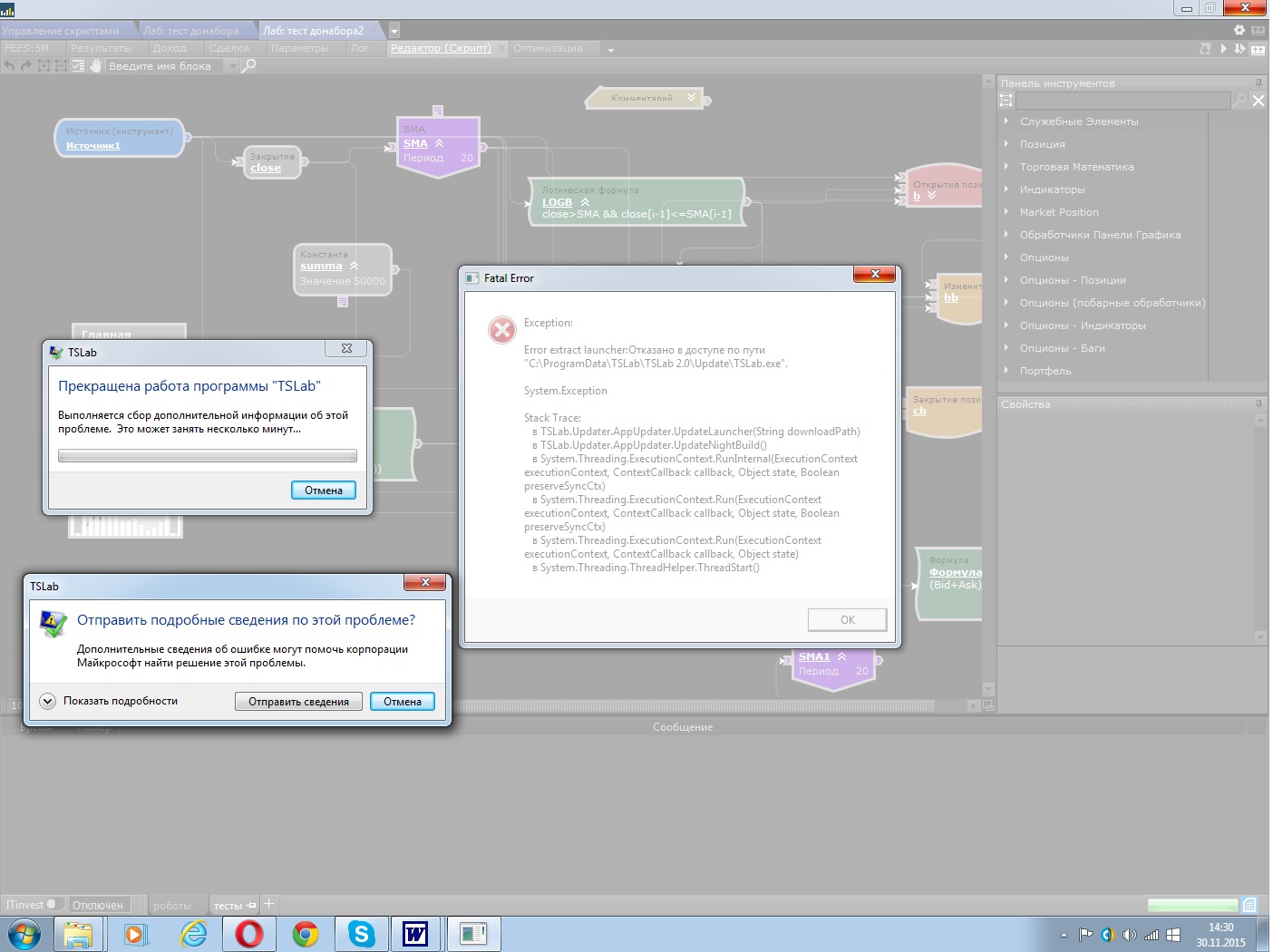 Попробуйте почистить папку C:\ProgramData\TSLab\TSLab 2.0\Update