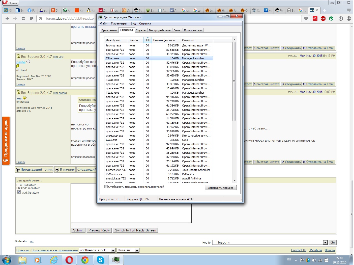 может антивирус гадит? у мя аваст... при обновлении тслаба он тоже подвисает как и тслаб... кстати в диспетчере задач у мя 4ре процесса тслаба висят... смотрим скрин... эти процессы через диспетчер не убиваемы