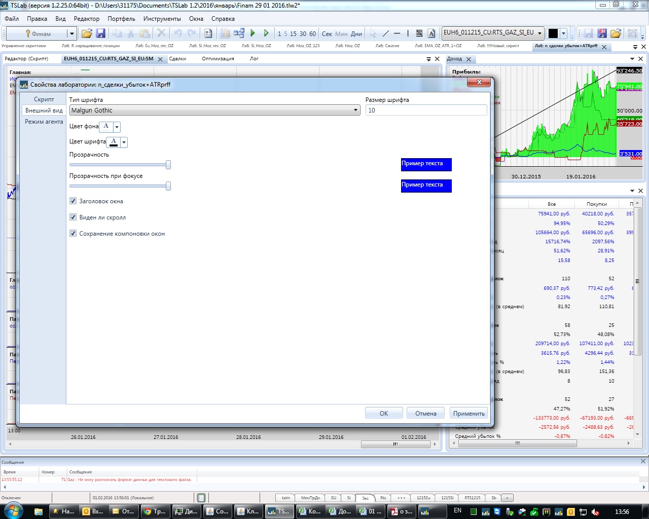 и по поводу компоновок. как я и сказал, что окна будут открываться как есть. в опционах чаще всего открывает окно лога, в агентах или лог или график, в скриптах чаще редактор но может и график открываться. сохраняется только расположение закладок (скрипт, агент, стакан и тд)