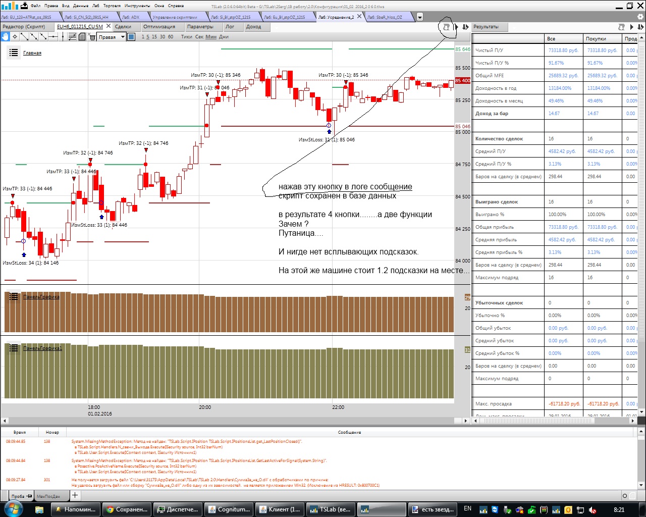 "и по поводу компоновок. как я и сказал, что окна будут открываться как есть. в опционах чаще всего открывает окно лога, в агентах или лог или график, в скриптах чаще редактор но может и график открываться. сохраняется только расположение закладок (скрипт, агент, стакан и тд) [/quote]"