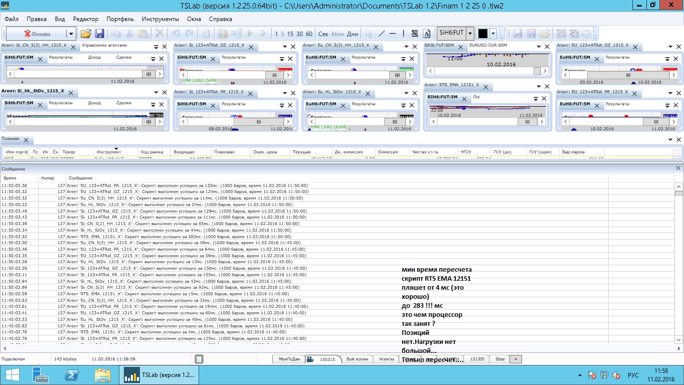 9 агентов,2 графика 60 мин, 3 графика 5мин.Основной фрейм 5 мн.